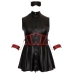The dress stands out with its sophisticated matte black finish, enhanced by vibrant red contrast stripes that emphasize the waist, creating a visually impactful bodice effect. Designed for adaptability and creative play, each side of the dress is equipped with a sturdy ring, allowing secure attachment of the included soft arm cuffs. These cuffs, crafted for comfort, feature adjustable hook-and-loop fasteners and are connected by sleek snap hook chains for a customizable fit.