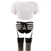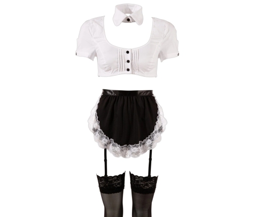 This outfit is crafted from a selection of high-quality materials, combining cotton, polyamide, polyester, and spandex for optimal fit, stretch, and durability. The suspenders and apron are designed to match the ensemble seamlessly, while the headband and choker add an extra touch of charm.