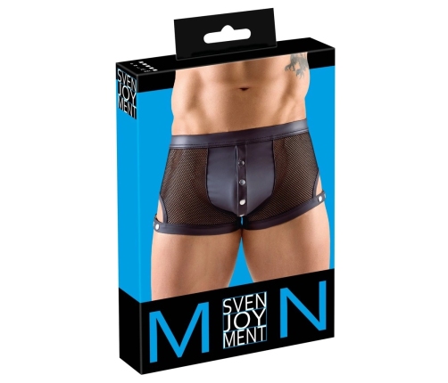 Design Features: The front showcases an accentuated matte pouch, enhanced by a distinctive row of press studs for visual flair and functional detail. Decorative thigh straps, adorned with metal studs, can be easily adjusted for an optimal fit.