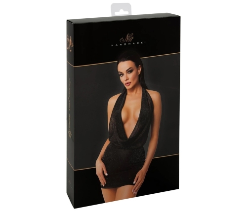 Step into elegance and sophistication with the Orgia Luminara mini dress by Noir Handmade. Designed for occasions when you want to stand out, this halterneck dress features a distinctive draped cowl neckline that beautifully accentuates the shoulders and neckline. The backless cut is complemented by delicate, decorative straps, providing both a secure fit and a striking visual element.