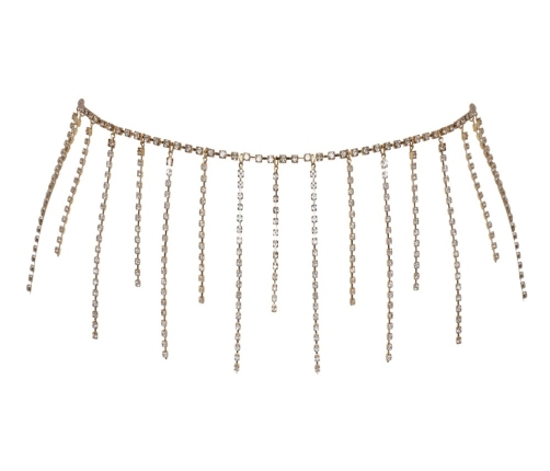 This elegant waist accessory is meticulously crafted from lustrous, gold-coloured metal and adorned with shimmering chains of rhinestones that add a captivating sparkle to any outfit. Designed for versatility, the chain can be worn as a chic addition to swimwear, a sophisticated belt for tight-fitting ensembles, or as a statement piece on its own to enhance your look during special occasions.