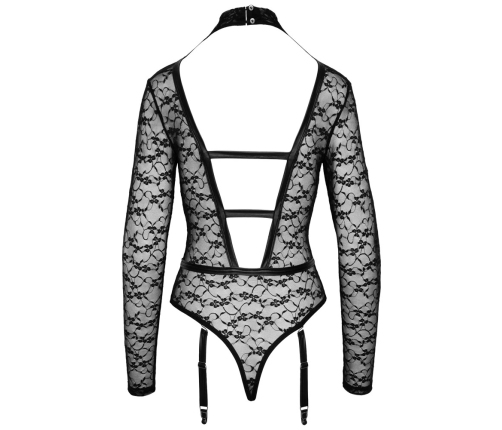 This sophisticated body is crafted entirely from soft, high-quality lace, offering a refined look with beautiful matte-finish accents. Designed to fit closely yet comfortably, the fabric provides excellent elasticity, ensuring maximum comfort for all-day wear. The deep V-neckline extends down to the midsection, while the harness-inspired front features flexible straps and decorative rings for a striking, contemporary touch.