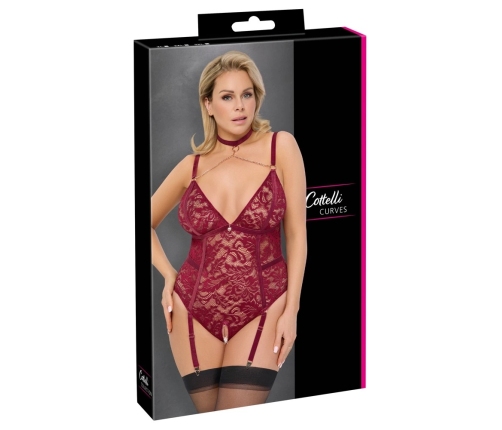 For versatile styling, this model features adjustable and removable velvet suspender straps, as well as detachable decorative chains that accentuate the neckline and connect to a velvet choker with a convenient adjustable closure. A charming heart-shaped pendant adorns the front for a subtle touch of elegance, while decorative rings at the waist add modern flair. The body is designed with a functional open crotch section, accompanied by a removable decorative chain for added versatility.