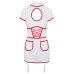Distinctive Design: Semi-transparent short suspender dress with a modern nurse-inspired look. Features a tight, figure-hugging cut for a sleek silhouette, complemented by half sleeves and a dramatic large neckline cut-out.
