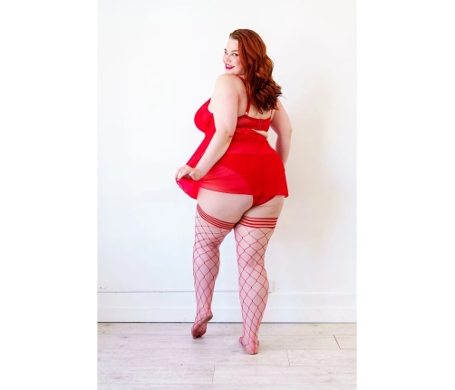 Elevate your style with the Kix'ies Claudia Large Net Thigh-High Stockings in vibrant red. Designed for those who seek fashion-forward accessories, these thigh-highs feature a bold, oversized fishnet pattern that adds a striking accent to any outfit. Whether paired with jeans for a trendy daytime look or matched with your favorite dress for an evening occasion, these stockings bring a contemporary edge to your wardrobe.