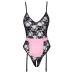 Includes: Bodysuit, detachable suspender straps, pink apron