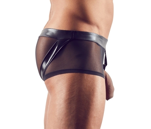 The combination of powernet (90% polyamide, 10% spandex) and wet look material (92% polyester, 8% spandex) ensures a comfortable fit and striking visual contrast.
