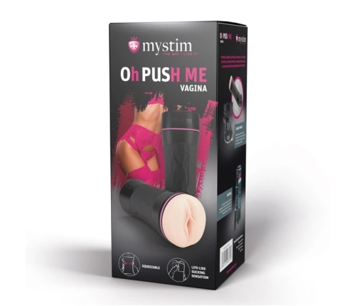 One gear ahead with Oh PUSH ME Vagina You will experience the perfect sexual sensation with Oh PUSH ME Vagina. The realistically formed, vaginal-shaped sleeve lets you increase the speed automatically with your "gear stick" because the super soft, slinky and ultrasensitive material invites you on extraordinary spins. Depending on whether you like longer or shorter rides: Your ladykiller can be tuned! Press the narrowing area to constrict the hot barrel. By adjusting the air slide you can also regulate yourself how strongly your penis is sucked in. With this riding style you will certainly reach the finish line and a champagne shower is also guaranteed! Usage All you need is some lubricant and off you go. By adjusting the air slide, you can regulate yourself how hard firm lips are supposed to absorb your penis. You'll be surprised what an enormous pull she has thanks to this air vent. If you want to make it even tighter, simply squeeze the masturbator a little and it will meet you even more. Recommendation The delightful, emotionally intense ride with the hot bunny becomes even more exciting with our optional accessories. The "Hot Rod" heating element brings the Oh PUSH ME up to full operating temperature and ready for a hot ride. You are up for different positions and don't want to take things in your own hands? Then your best choice is the "Captain Hook" wall mount. Fastened to a smooth surface and docked with the masturbator, you are then ready for "hands-free" boarding and heading for the narrow strait! Cleaning & Care All parts can be thoroughly cleaned with water and a mild soap. Before putting the Oh PUSH ME back together or using it again, you should allow it to dry completely. A skin-friendly disinfectant is a good idea at regular intervals. Technical Details - Length Masturbator: 22 cm - Diameter Masturbator: 8,4 cm - Length Sleeve: 18,9 cm - Diameter Sleeve: ca. 1,0 -2,8 cm - Total insertable length (in erect form): 17 cm - Sealing cap - Material: ABS, thermoplastic elastomer - Scope of supply: 1 Vagina Sleeve 1 box with air valve and squeeze area instructions