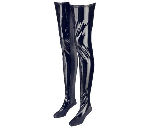 Step into a world of style and comfort with the Black Level Vinyl Bed Boots in size S/M. These striking boots are expertly crafted from high-gloss black stretch vinyl, offering a sleek, modern appearance ideal for those who appreciate bold design. The combination of a supple polyurethane coating with a flexible fabric blend ensures a close-fitting silhouette, while remaining comfortable for extended wear.The boots feature elastic seams and a flexible fit throughout the legs and feet, allowing for ease of movement and adaptability to different body shapes. Their smooth, shiny surface creates a dramatic visual effect, making them a standout addition to any wardrobe. Designed for versatility, these boots are perfect for adding a unique touch to your personal collection.Product Features:High-gloss, black vinyl surface for a modern lookStretchy material throughout legs and feet for a tailored fitElastic seams enhance comfort and ensure a snug fitFlexible design allows for comfortable movementEasy to clean and maintainAdvantages:Combines style and comfort with practical designDurable construction for long-lasting wearAdapts to body contours thanks to stretch componentsSuitable for various uses and outfitsTechnical Specifications:Brand: Black LevelModel: Vinyl Bed Boots S/MColour: BlackMaterial: 90% polyester, 10% polyamide, polyurethane coatingSize: S/M