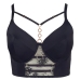 The bra is crafted in classic black, complemented by refined rose gold accents that add a sophisticated touch. The front is adorned with a semi-transparent lace insert, lending a subtle decorative element while maintaining a modern, fashionable look. The stretchable, opaque main fabric delivers both flexibility and coverage, ensuring a comfortable wearing experience in any situation.