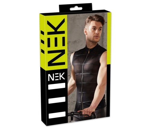This designer shirt from NEK is crafted for those who value an athletic look and advanced fabric technology. The sleeveless design highlights the shoulders and arms, while the semi-transparent powernet material is accented with striking matte black stripes, creating a visually appealing contrast. Its contemporary cut and breathable construction make it an ideal choice for both casual outings and special events.