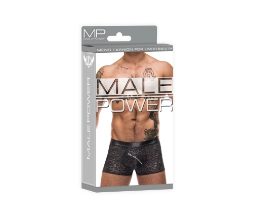 Discover the Male Power Zip It Short in classic black, designed for those who value comfort, style, and innovative details in their wardrobe. This model from the renowned Zip It collection stands out with its anatomically contoured pouch, enhanced by a diagonal zipper that combines convenience with a bold, modern aesthetic. The zipper is equipped with a protective flat for added comfort and security during wear.