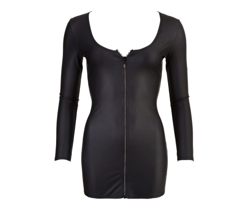 Elevate your evening style with this sophisticated black mini dress from the renowned Cottelli Collection. Designed for those who appreciate modern elegance, this dress features a close-fitting silhouette that accentuates the body's natural lines, creating a flattering and confident look. The long sleeves add a touch of refinement, while the standout detail is the sparkling front zipper, adding a hint of glamour and making this dress a true head-turner.