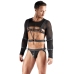 The open-chest crop top is made from soft, elastic powernet fabric, delivering both breathability and a comfortable anatomical fit. Accentuated by matte-look detailing and a prominent front ring, the long-sleeve design ensures both freedom of movement and a unique appearance. The matching jock features an open back and a row of press studs at the front, combining modern design with everyday comfort.