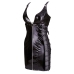 A short dress from Black Level that is completely made out of shiny black vinyl. The dress has decorative lacing at either side and stretchy powernet inserts underneath it. It is tight-fitting and has a very low-cut neckline. The strap below the cleavage area and the straps can be adjusted with buckles for a perfect fit. The practical, full-length metal zip at the front can be opened quickly for erotic fun.