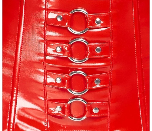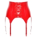 This striking suspender belt from Black Level is crafted from glossy red vinyl, delivering a unique and modern look that stands out. Designed with extra width for added comfort and support, this model features four decorative silver-tone rings that enhance its contemporary aesthetic.